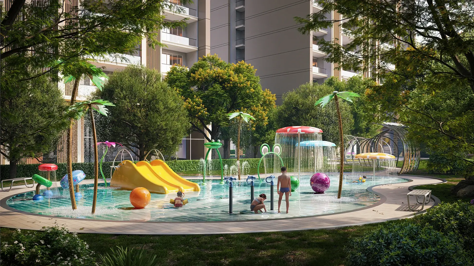Vehicle-free podium level ensuring enhanced safety and peaceful living.